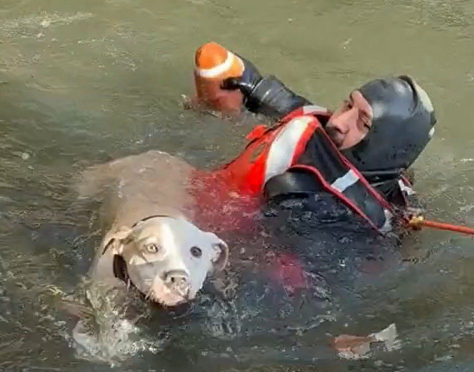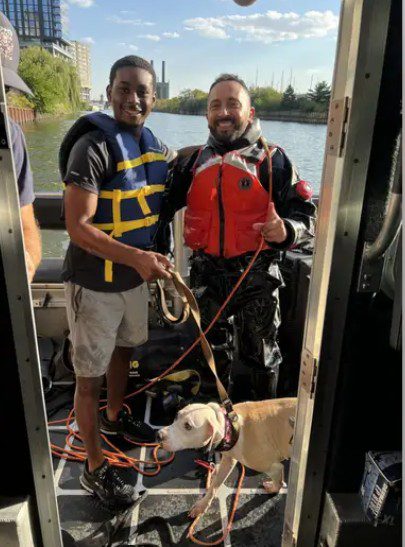 The Chicago Police Department dispatched their Marine Unit to rescue the dog. The Marine Unit had been out patrolling the river and quickly responded to the dog’s plight.