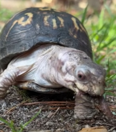In February 2025, a relative of the boy who found the turtle called Leone and asked for help. Rockalina, however didn’t look like a regular box turtle; her skin was discolored, and her eyes were shut and in bad shape as were her claws. She was missing her tail and had been covered in cat hair.