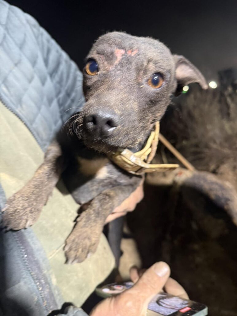 The dog’s owner had stopped to let Popcorn relieve herself when the dog spotted the raccoon, and the chase was on! Unfortunately, the dog followed the raccoon into a deep hole and could not find her way out.