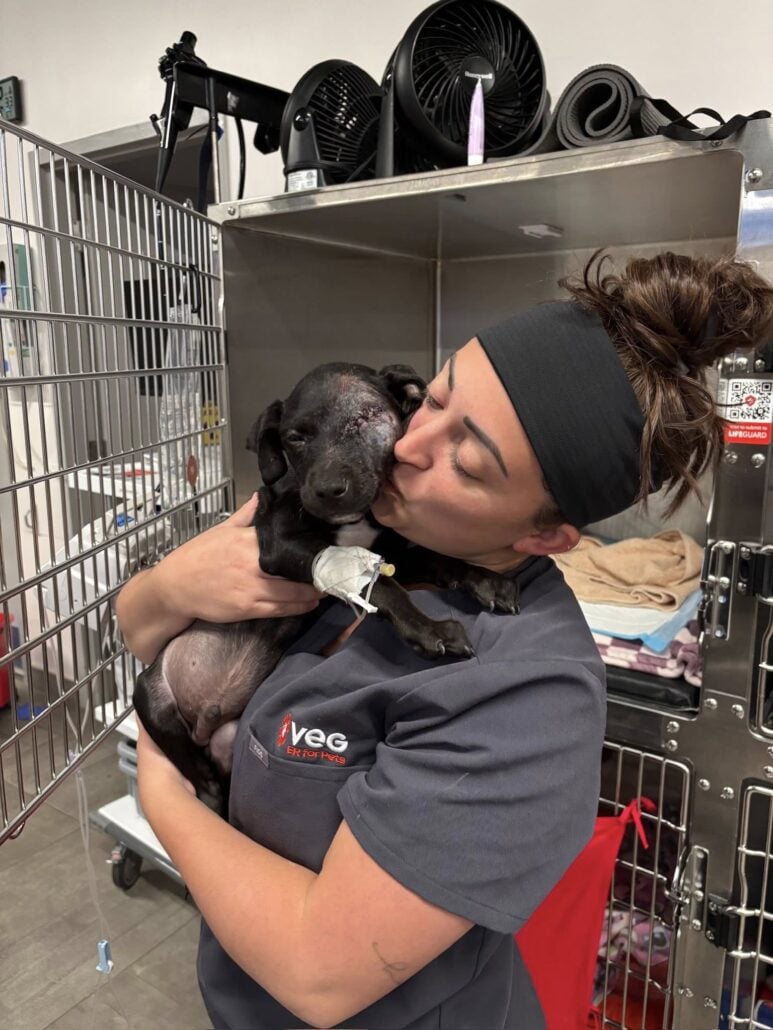 When he arrived, his most obvious injury had been his eyeball pushed out of its socket; his condition was alarming and critical. And despite his pain, the puppy didn’t cry out, but instead gave tiny kisses to the volunteers who waited for the emergency veterinarians to tend to his injuries.