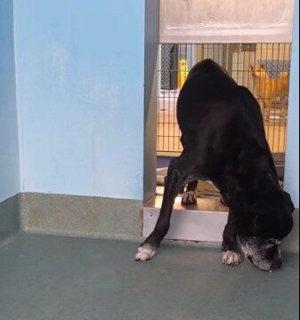 no dog should spend their life trembling on a cold floor, forgotten and overlooked. henry deserves relief from pain, gentle hands and love in the years he has left. He deserves to leave through the front door – not the back…