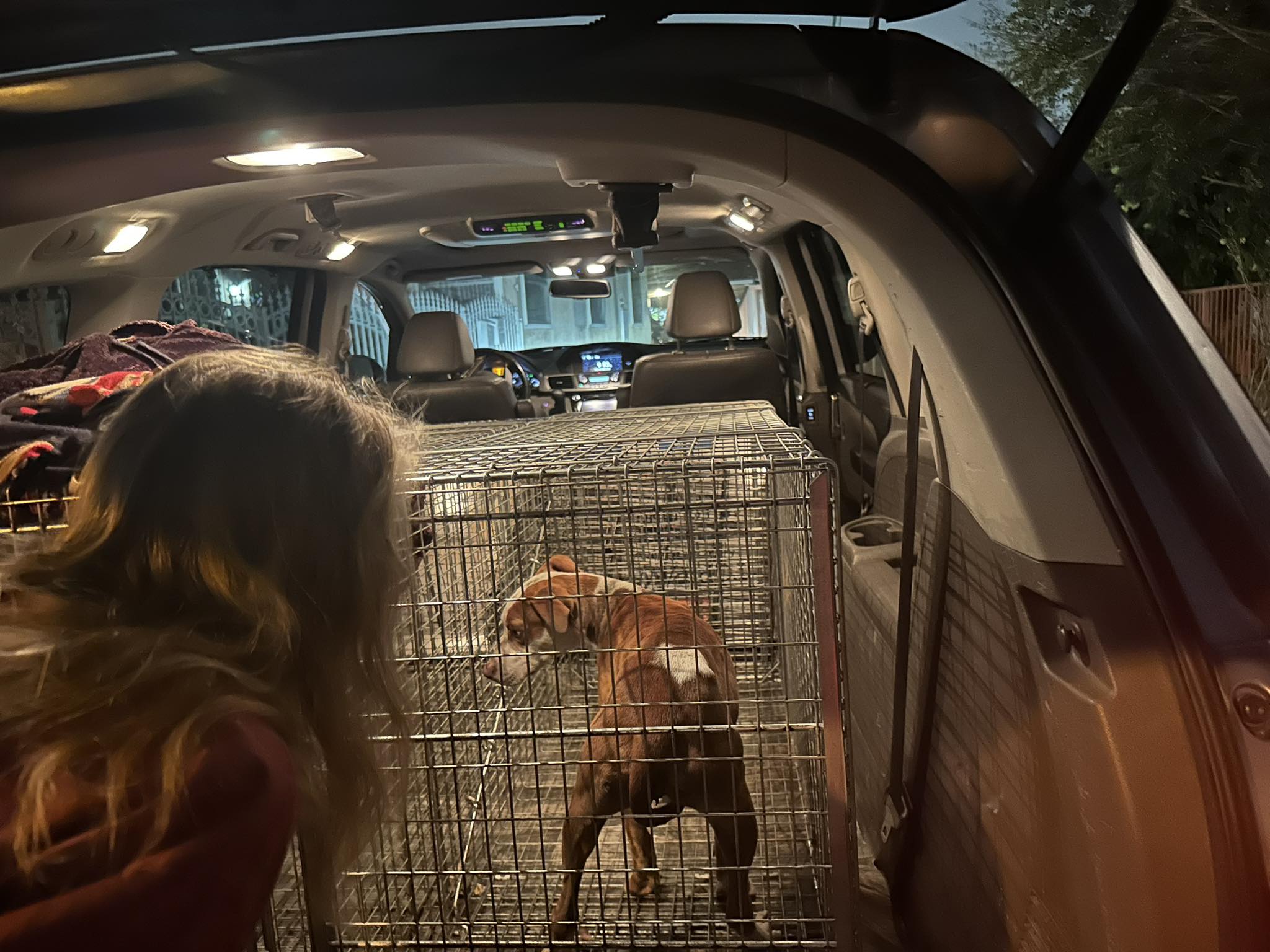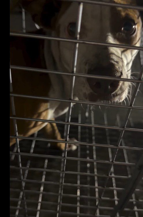 Suzette arrived and set her humane trap. The dog was so hungry, she crawled out from beneath the house on her own and walked willingly into the trap for the warm chicken waiting for her. She was starving.