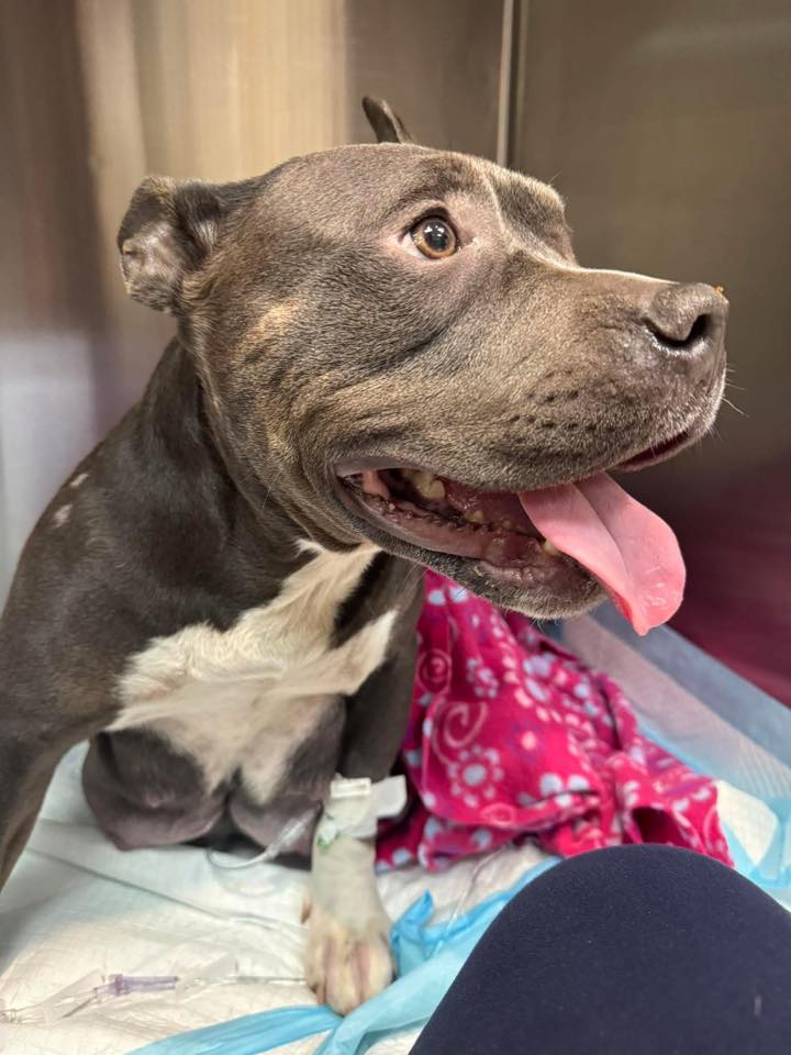 A concerned citizen found her and contacted Animal Control. When officers arrived, the dog had been in awful pain, but despite the trauma and her fright, she gently rested her chin on the officer’s shoulder as if saying “please help me” and “thank you.”