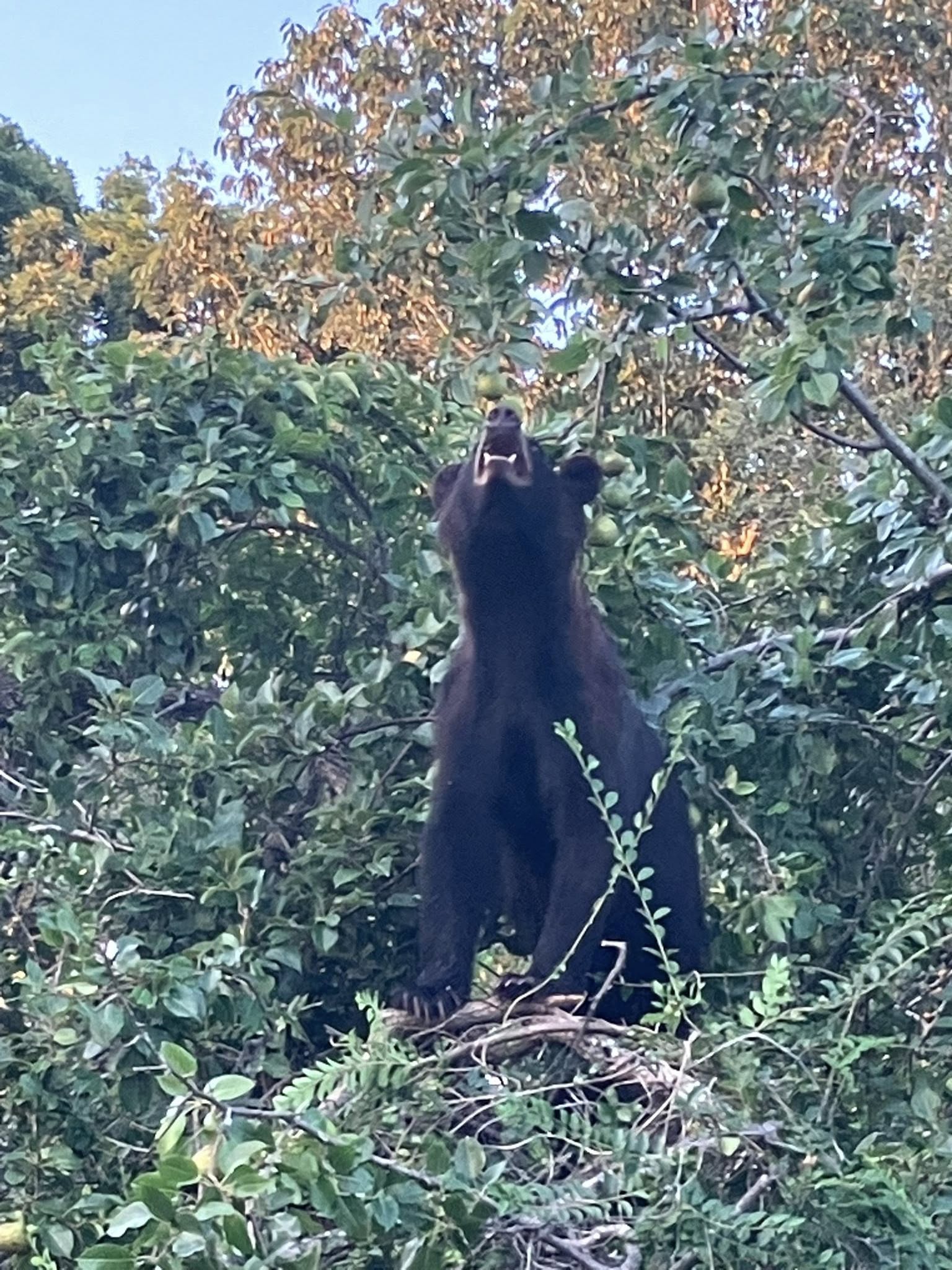 And then he would climb down the tree, comfortably lie down in the shade and dine on the pears. Then he would do it again.