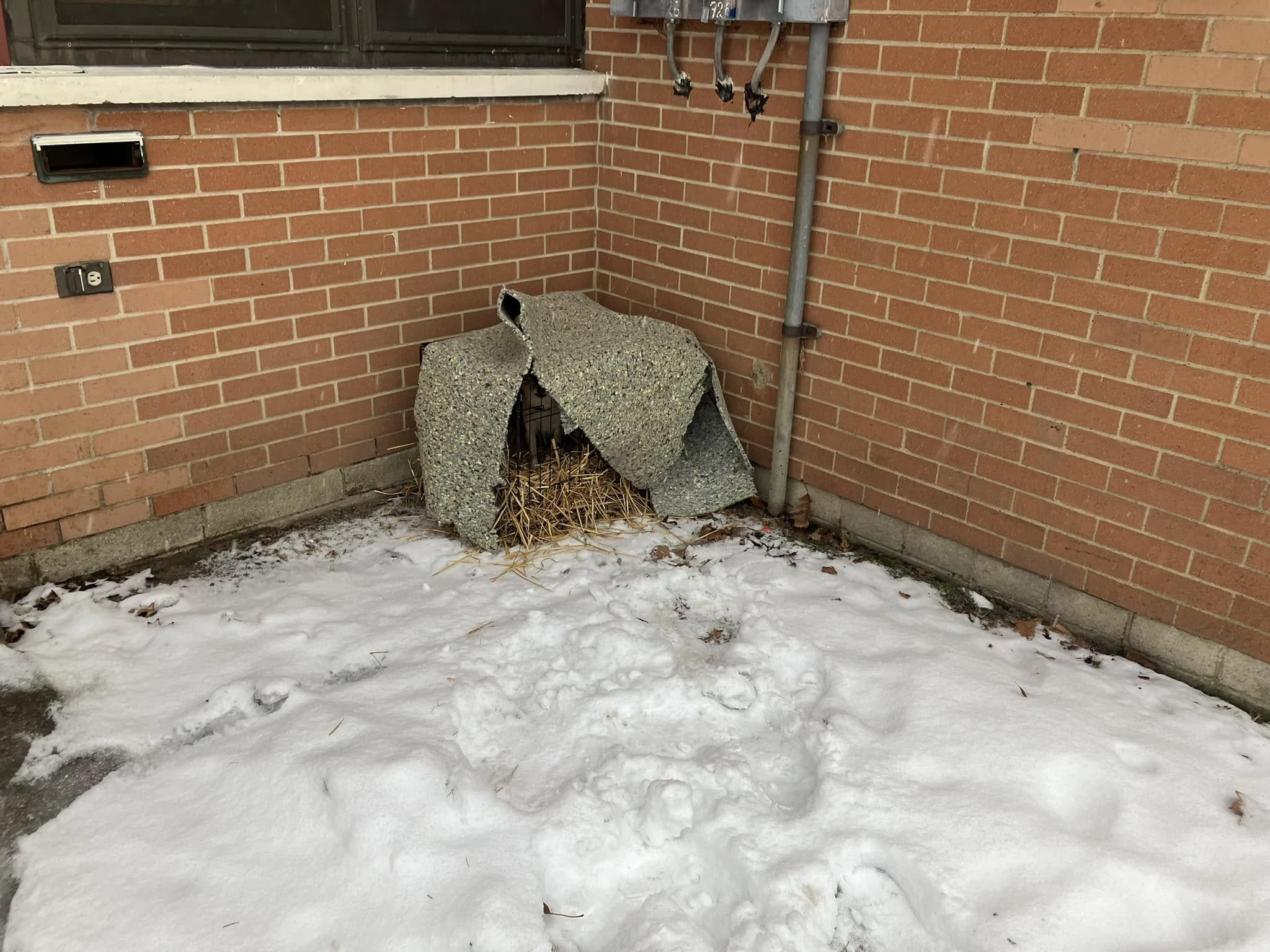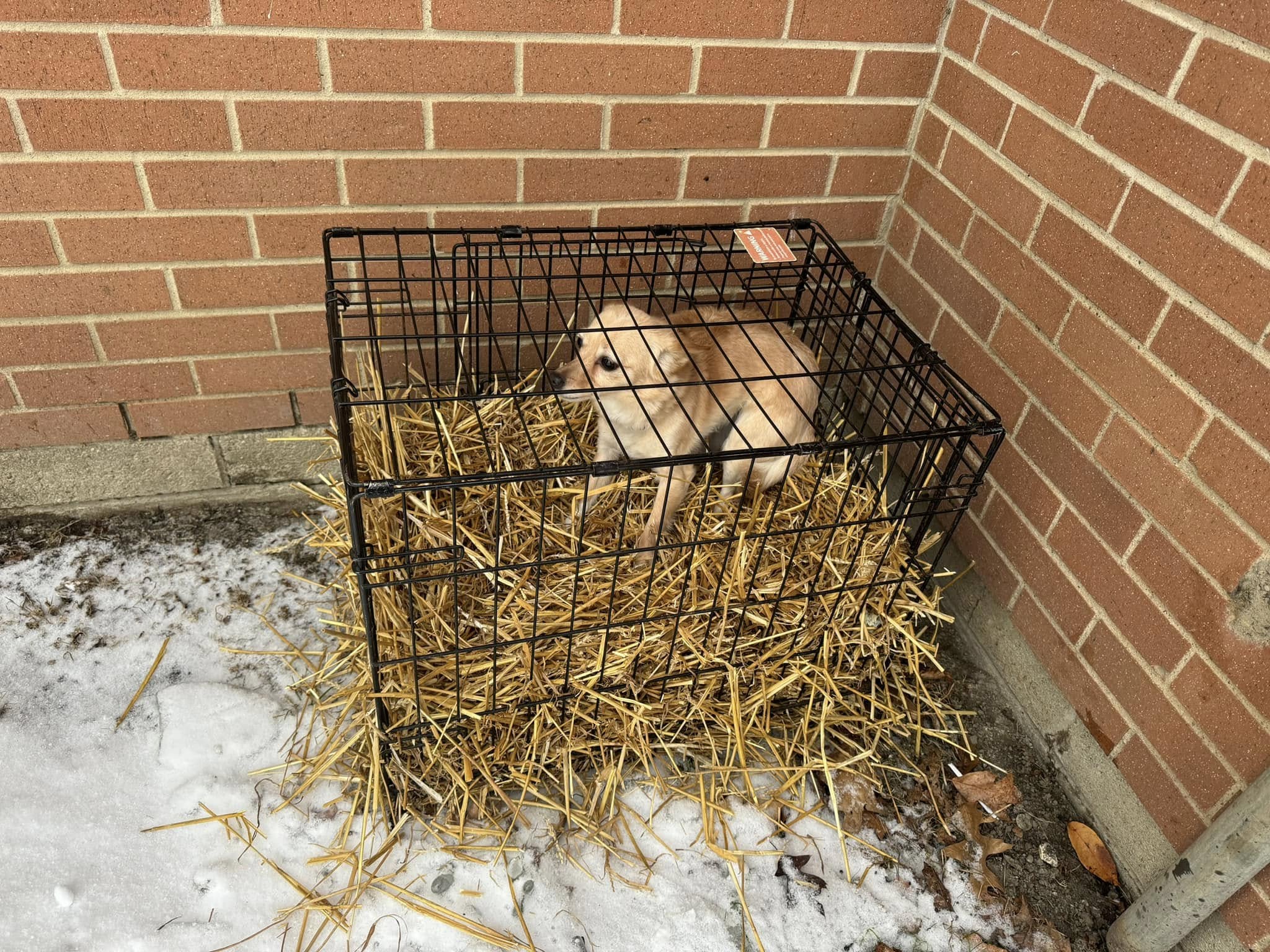 The dog, who has now been named Lemon, was abandoned in front of Plazaview Court as outdoor temperatures plummeted to below freezing. Straw had been packed in the crate and an old blanket placed over it. Perhaps that was the way the previous owner had hoped to keep the dog warm, however it is illegal to abandon a pet. What if no one had found Lemon in time?