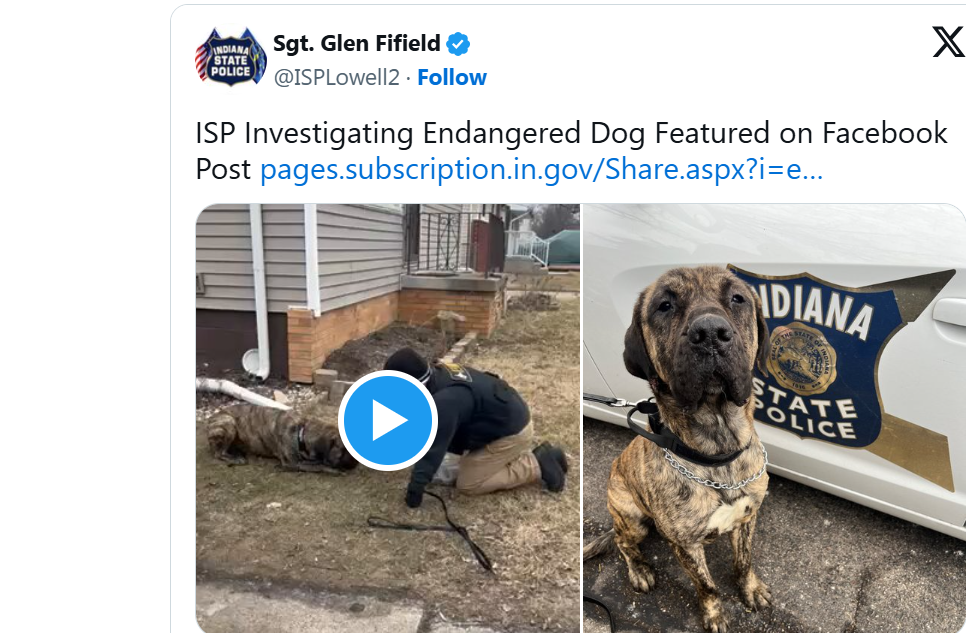 The Indiana State Police Criminal Investigations Division at the Lowell Post has initiated a criminal investigation into the video that has been shared on social media in regards to a dog that was being transported on a flatbed trailer. One of our detectives and an off-duty K9 unit have located the endangered canine that was being transported as well as having identified a suspect. The canine is being held in a safe undisclosed location and will be receiving treatment. Further information will released on Thursday morning once the Lake County Prosecutor’s Office has had an opportunity to review the information and determine appropriate charges