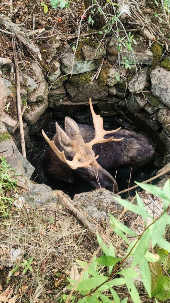 It had been late in September when a family who owned the property spotted a pair of antlers. He had already heard a noise, but had no idea it was coming from a moose in distress. Maybe the noises were from some wild turkeys in the area; a little detective work proved it was from a moose. The man had recently purchased the property, and had no idea an abandoned well even existed.