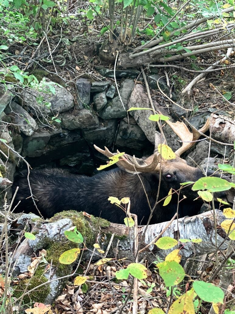 They sent a biologist who sedated the moose and then wardens put straps on the animal. Using an excavator provided by the family, they were able to lift the moose out of the nine-foot deep well.