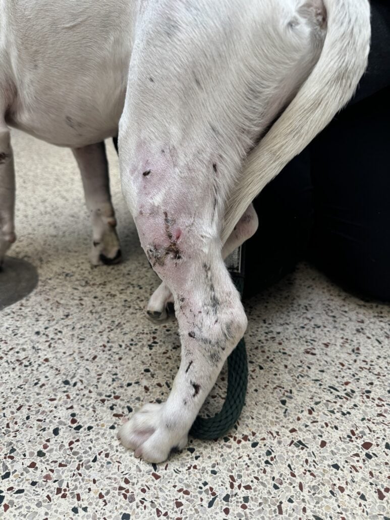 When our veterinary team examined him, the reality was hard to take. His body was covered in what appeared to be bite wounds, and he was trembling. He was scared, hurting and unsure of what was happening.