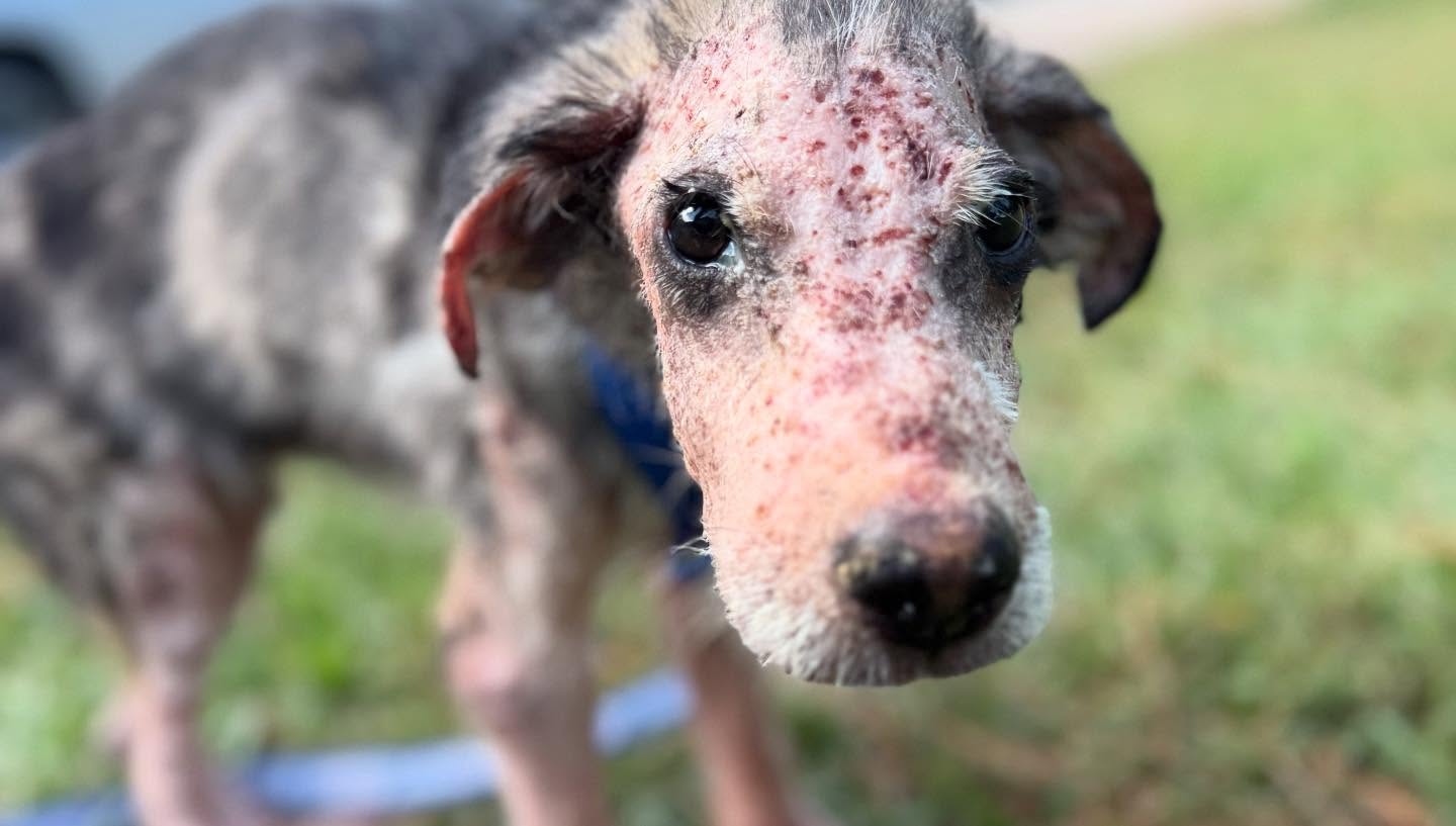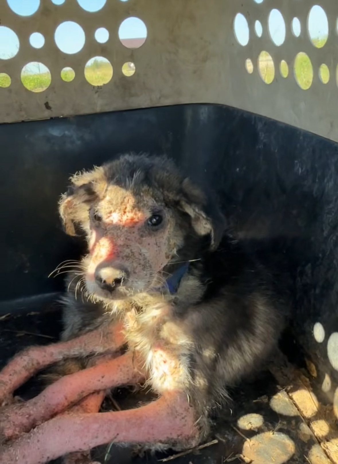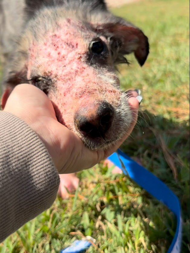 When this boy was dropped off at our clinic today, he was covered in maggots — his skin raw, swollen, and oozing from severe mange. He cried the entire car ride, every whimper a reminder of the pain he’s been living in.