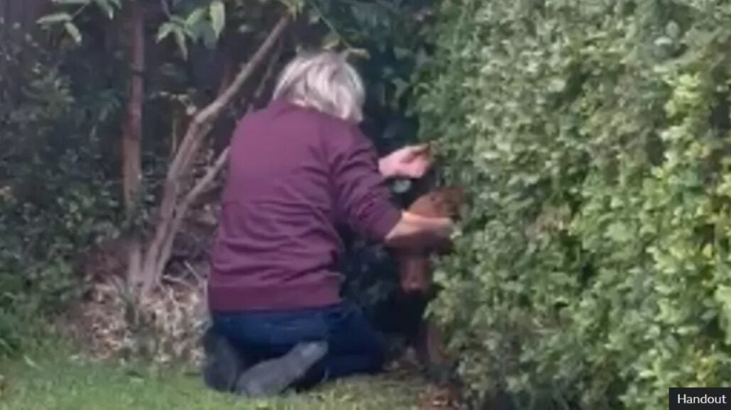 The squirrels caused such a ruckus that a builder was alerted to see what all the fuss was about. He realized it wasn’t a fox in the hedge, it was actually Ruby.