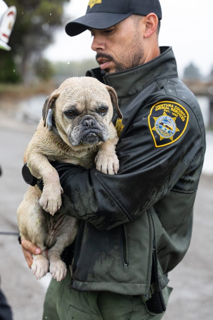 Ventura County Animal Services responded to a report from the Ventura County Public Works about a small dog who had become trapped in rising waters located at Wood Road and Laguna Road in Camarillo.