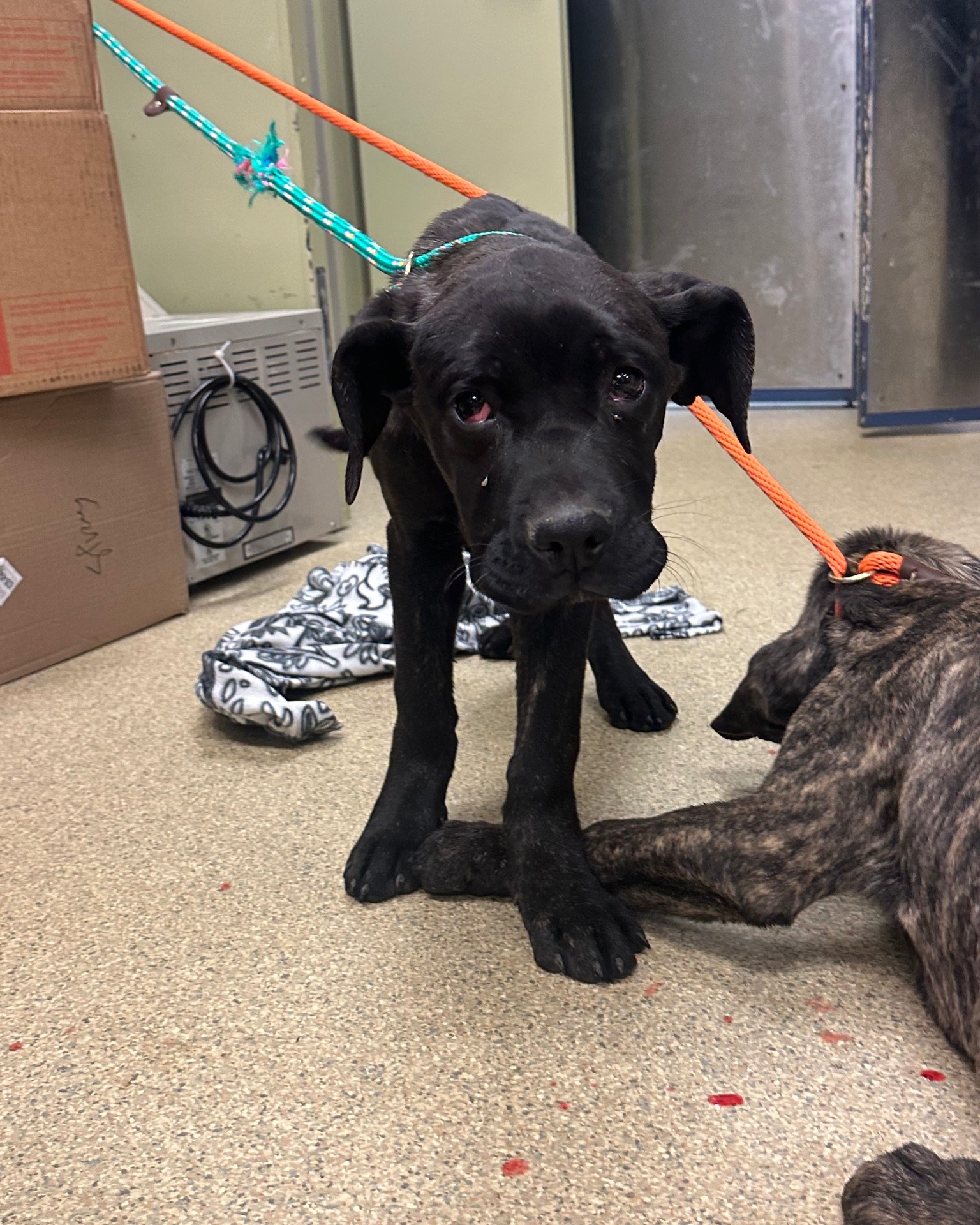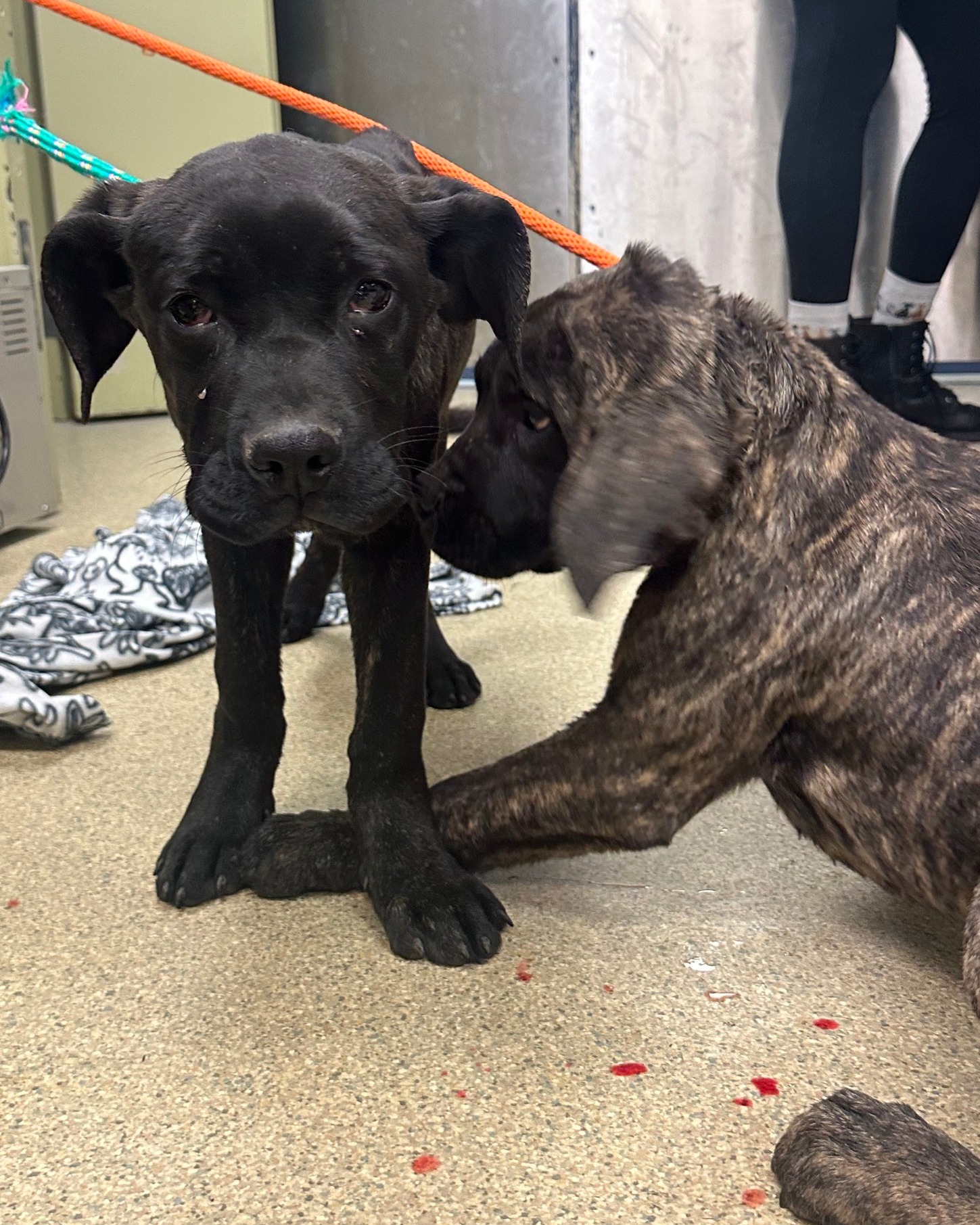 At the Stray Rescue of St. Louis, two puppies arrived on Wednesday morning. The black puppy’s name is “A Minor” and his brindle brother is named “Mustard.” The dogs had obviously been neglected, and one of the puppy’s medical needs would soon escalate to that of a life-saving emergency.