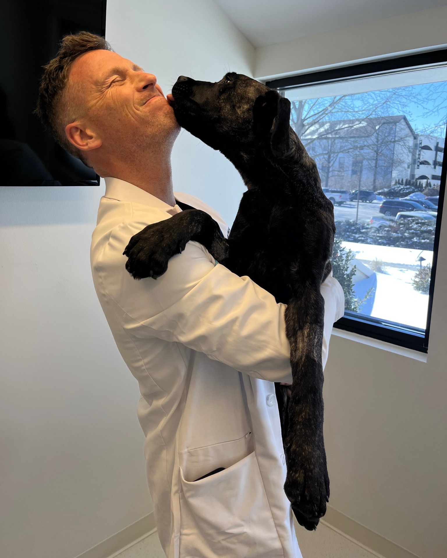 That’s Dr. Wininger getting kisses from A Minor. They kept him overnight for monitoring.