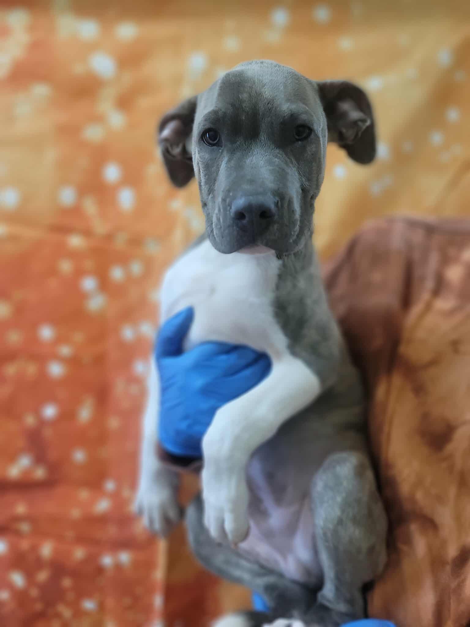 Dr. Terry has been treating the puppy, and just today, this precious puppy is ready to find his forever home.
