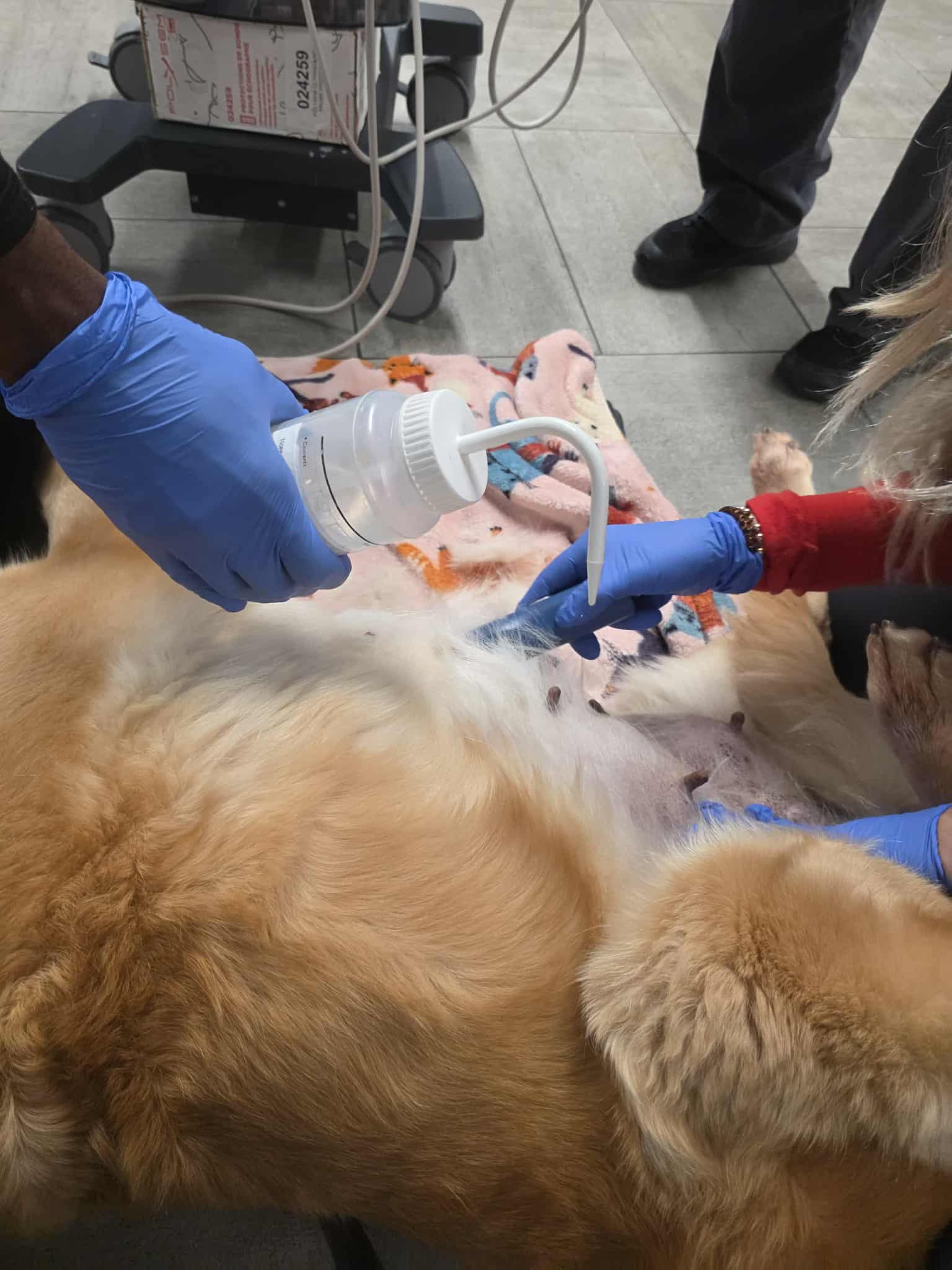 What had hoped to be her gradual recovery turned into an emergency just two days later. Butternut was rushed into emergency surgery with Pyometra – a severe and often fatal uterine infection caused by years of overbreeding and insufficient veterinarian care.