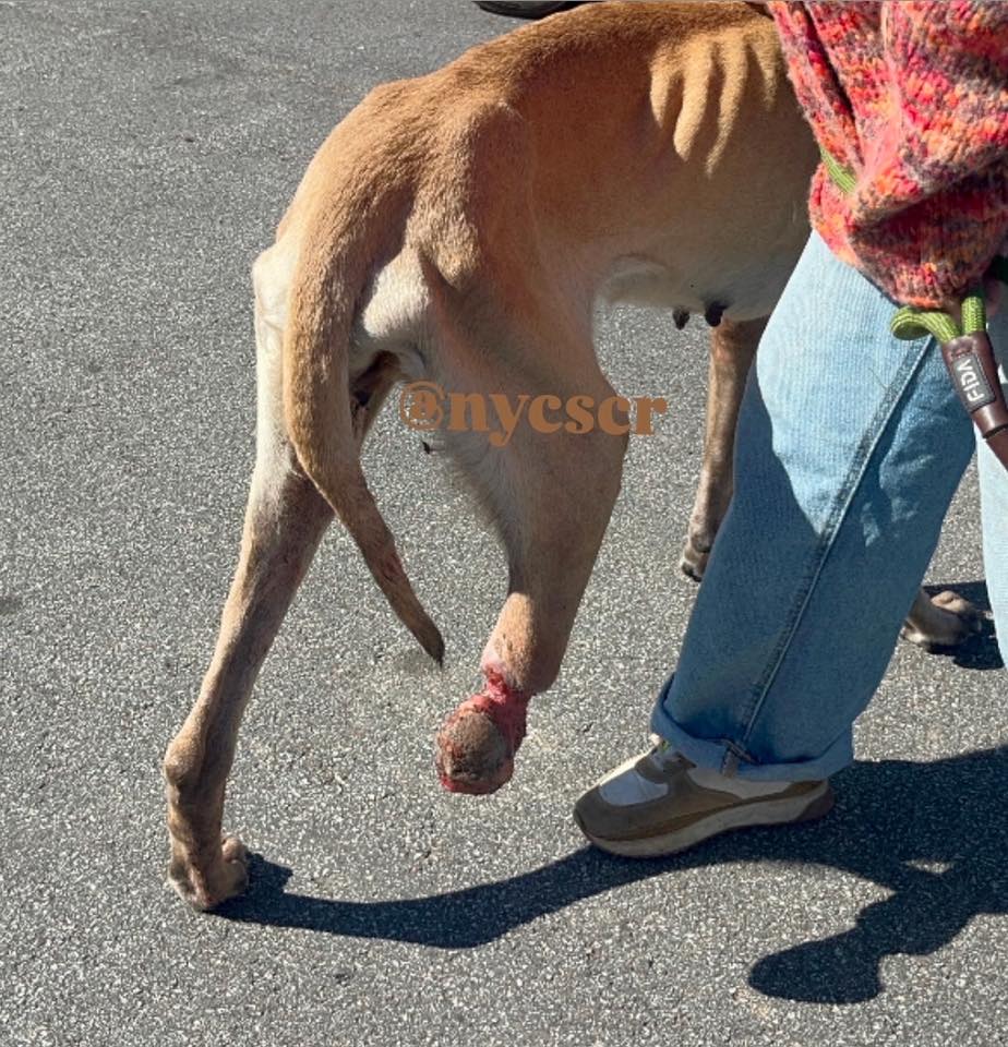It had been on Thursday, November 6 when NYC Second Chance Rescue received a desperate call from a municipal shelter about a dog found lying on the side of the road. The young pup, named Marianne was in critical condition; she was nothing more than skin over her skeleton and had been missing half of her leg.
