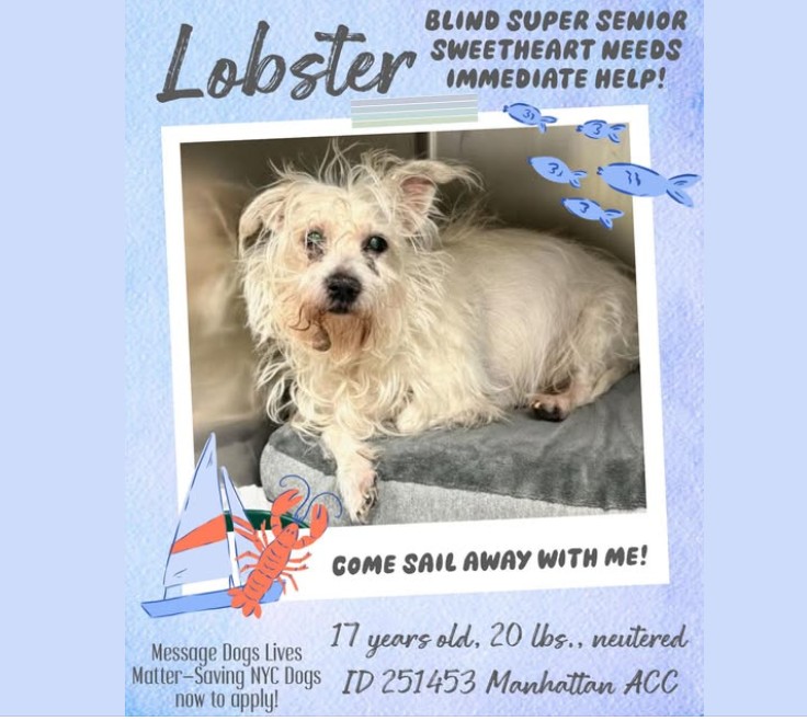 For a dog who was discarded, confused, and suffering just days ago, this is his second chance. The 17-year-old senior, named Lobster, arrived at NYC Second Chance Rescue late last week as a stray; Animal Care Centers of New York reached out for help.