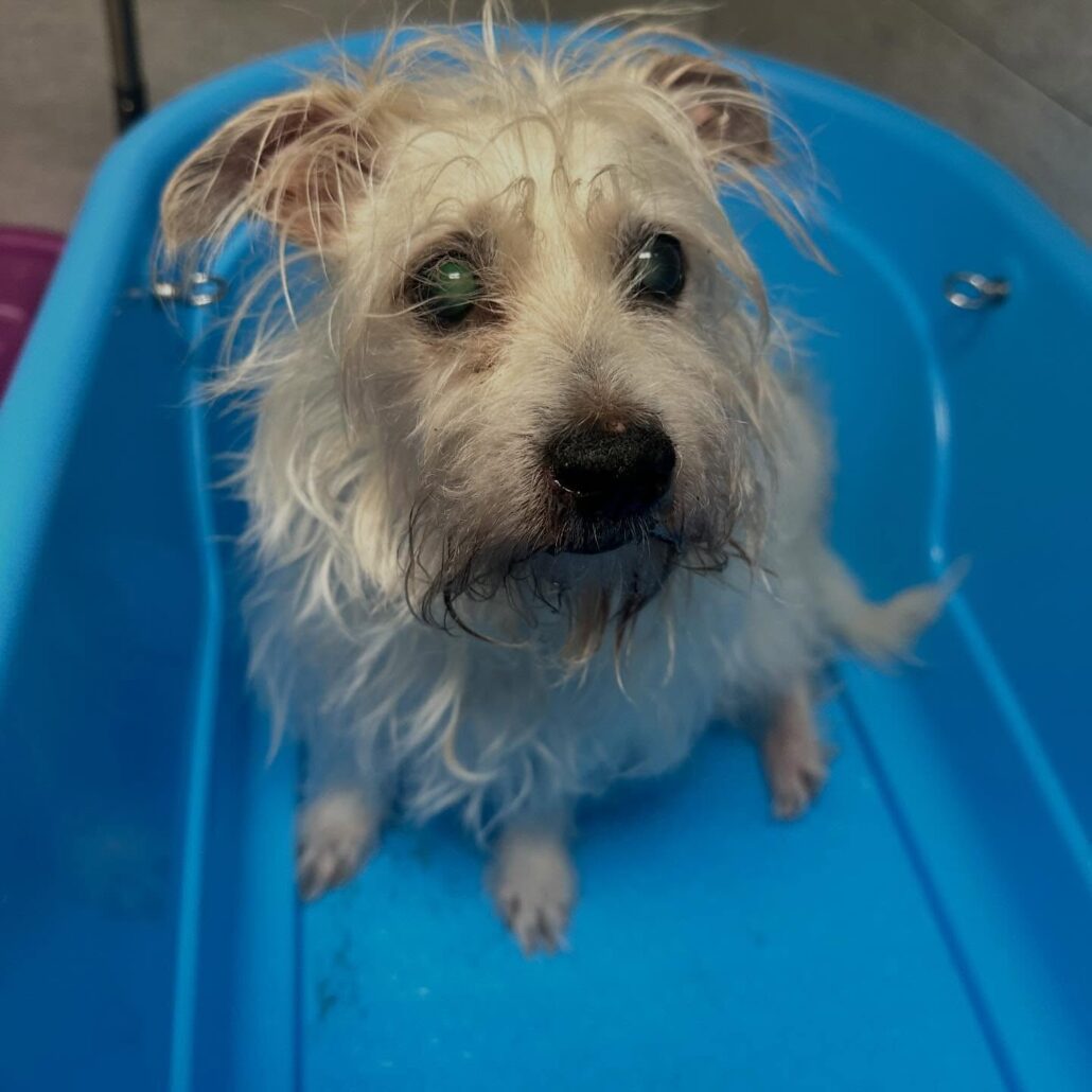 Not only had he been a senior stray, he had been suffering from severe medical conditions that required immediate attention. His belly was distended, his ears were bleeding, he is blind, diabetic and completely lost – not because of his age, but because everything he had known in his past was gone.