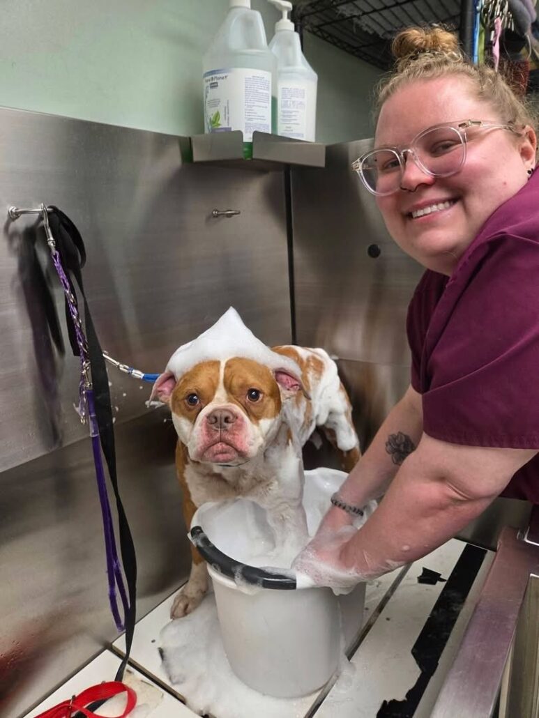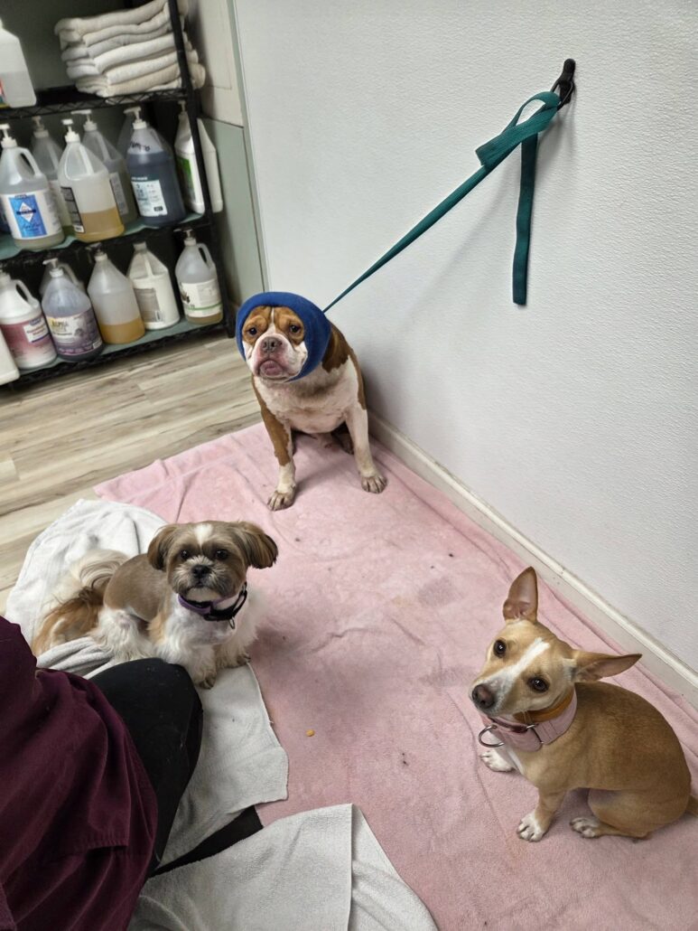 The compassionate staff at Wolcott Dog Pound Wolcott Police Department rushed the dog to Mack & Molly’s Pet Parlor LLC where all the ticks were carefully extracted in a 4.5 hour grooming session. Tony took everything like a trooper. He even made some new friends.