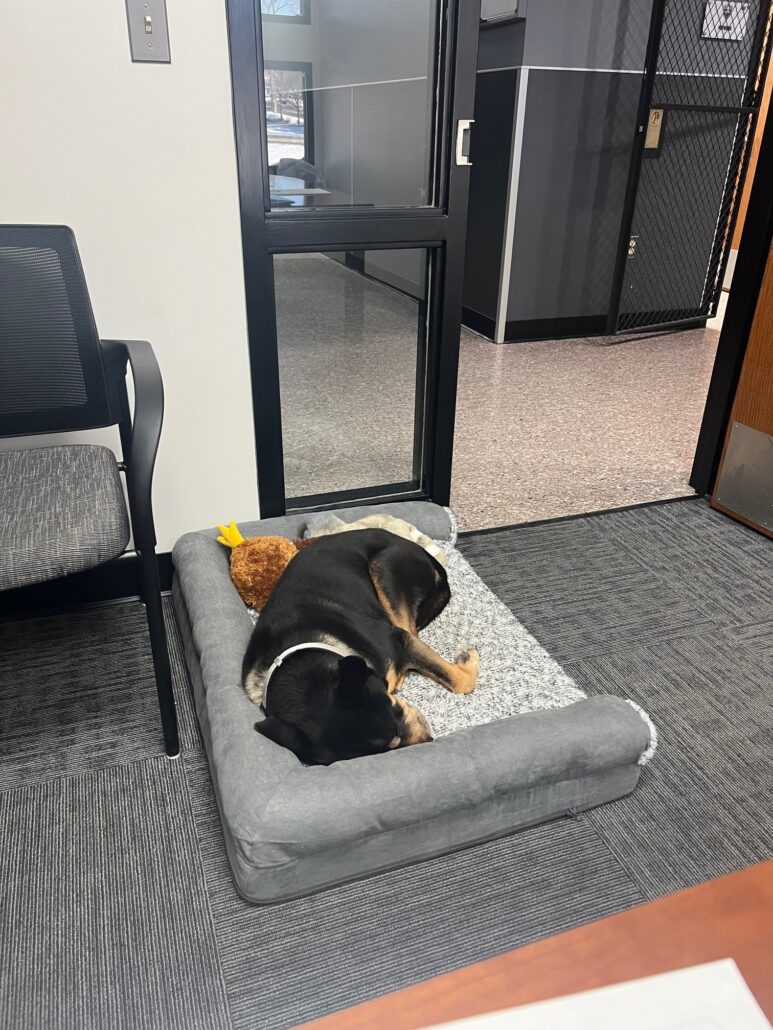 Lil’ Craig brings smiles and some needed stress relief to the staff. He loves to be around people and although he moves at a slower pace, it’s fine – maybe we all need to slow down and smell the roses? He will be living at the station and already has the run of the place.