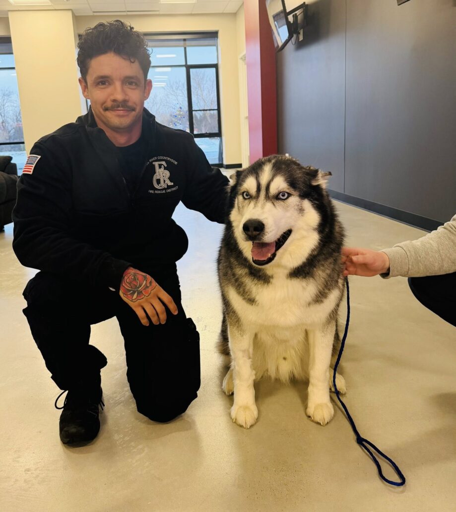 After a few days of recovering, Flash was more than ready to meet the brave firemen who were there to rescue him from the frozen pond.