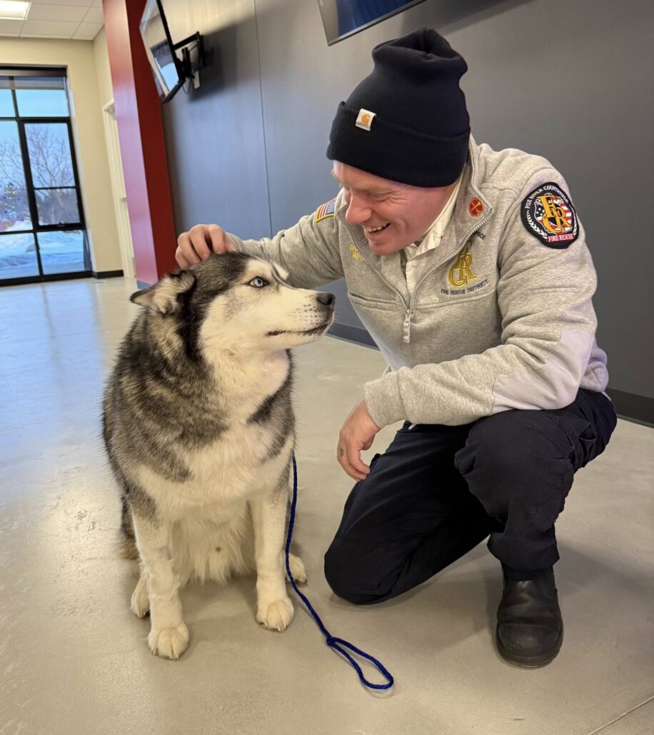 Flash, the 100-pond Alaskan malamute rescued from a frozen pond December 15 in St. Charles Township, now has a loving family from Woodstock.