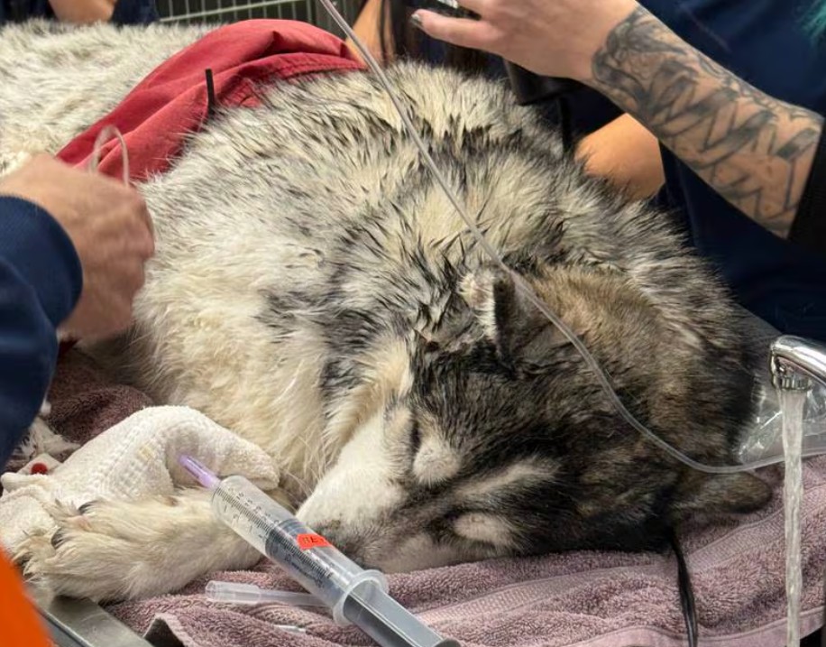 An emergency call for help was answered by Dr. Joseph Lupo, a veterinarian with the Dundee Animal Hospital of Elgin. Flash had been in the frozen pond for at least an hour, and the veterinarian team wasted no time preparing for the malamute’s arrival.