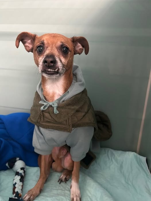 Ninja’s owners dressed him in a hoodie, as if the cute outfit would make it easier for their family dog to survive in an overcrowded animal shelter after they surrendered him. His owners told the shelter they could no longer afford his dog.