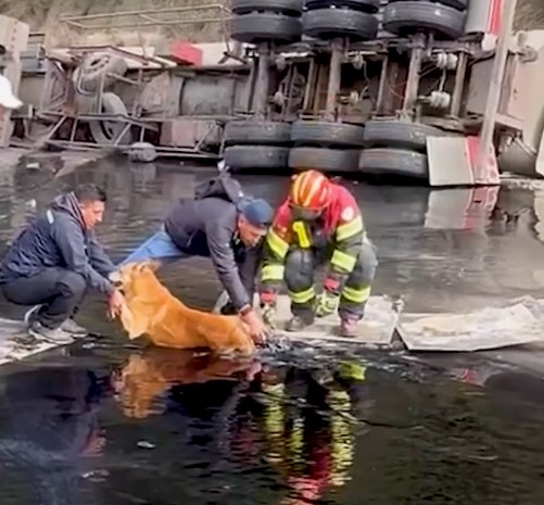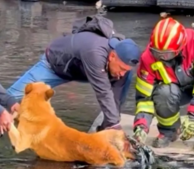 In a viral video, recorded by local resident Alex Pila, the dog is seen reaching out towards the nearby humans as if begging for help. According to Storyful, both first responders and soft hearted people standing by jumped into the water to help the dog.