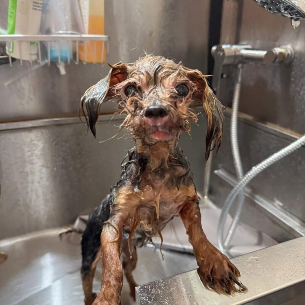 As the staff cut away her matted fur, her fragile skin peeled away. Her nails had grown so long, they wrapped around her fur. Underneath the swelling of her face, the tissue had thickened causing her mouth and nose to stretch. Still, no matter how thorough her bath, the smell of an underlying infection persisted.