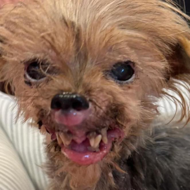 Quail was rushed to the organization’s partner veterinary hospital where the tiny dog trusted everyone who reached out to help. Quail just wanted to believe. She is currently on antibiotics to treat her badly infected eyes. The veterinarians, however are awaiting diagnostics, and it is feared she has an invasive cancer consuming the junction of her mouth and nose.