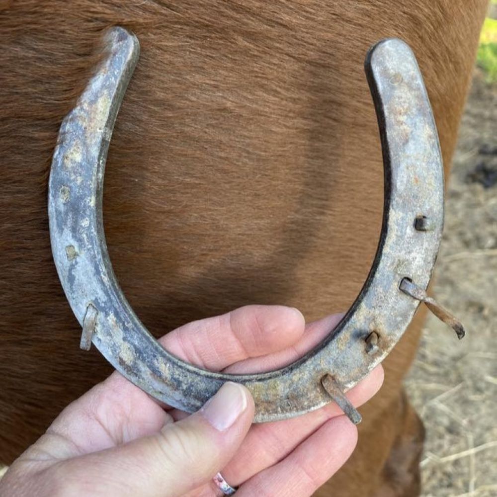 When discovered, Kate had a visible indentation on her nose where a halter once had been, she was missing two horseshoes and one of the remaining shoes which had partially come off, had been causing her to walk unevenly. One of the rescuers was able to pull the loose shoe free before loading her onto to the trailer.