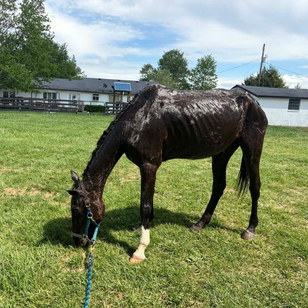 Last week, the Kentucky Humane Society Equine CARE team had been conducting a welfare check in Eastern Kentucky when they found the emaciated mare struggling to stay on her feet. Getting her back to Willow Hope Farm was her best chance at survival, and once she arrived, the staff was able to trace her name and much of her story.