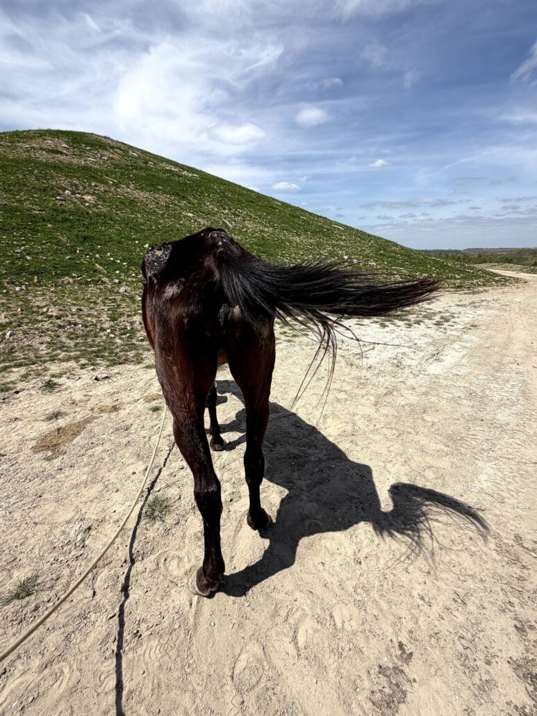 Somewhere beneath all of this is a horse who remembers kindness and is ready to receive it again.