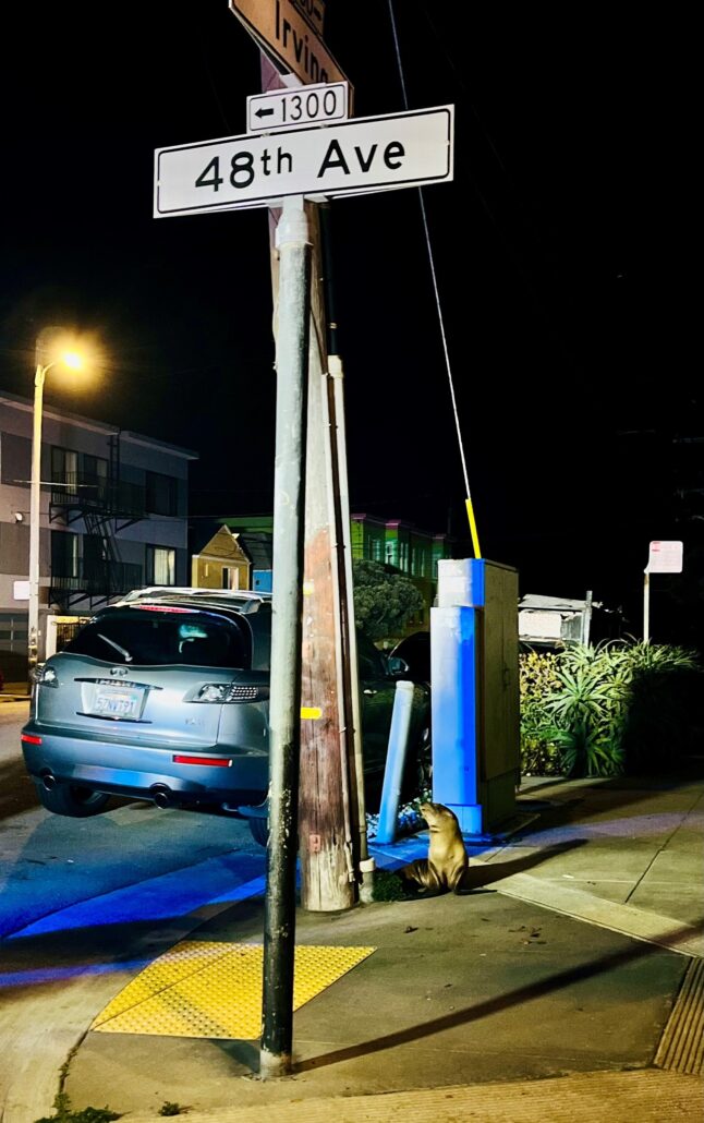 At the Marine Mammal Center, trained responders joined officers from the San Francisco Police Department and the San Francisco Recreation & Parks rangers to rescue a California sea lion pup spotted on 46th and Irving Street in San Francisco on April 16.