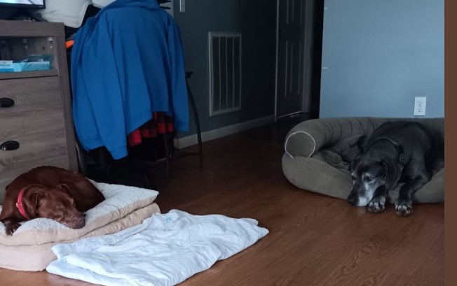 On Sunday, a kind friend volunteered to foster Navy. It had been a family affair when Navy left with her new family which included a very majestic frosty-faced Great Dane named Sir Henry.