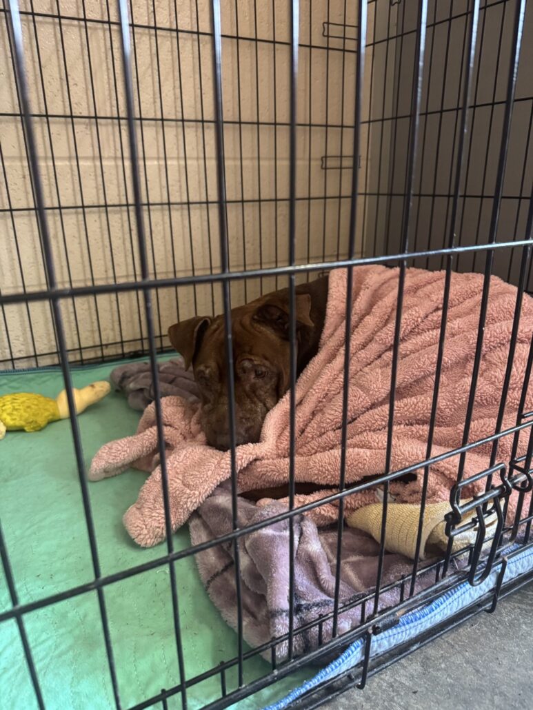 Her blood work was all within normal limits, but the veterinarians do not want to spay her or remove the mammary mass at this time because her weight was too low. She is estimated to be about 14 years of age. There is a strong suspicion of cancer, but the goal is “to make an old gal comfortable for the time she has left” situation.