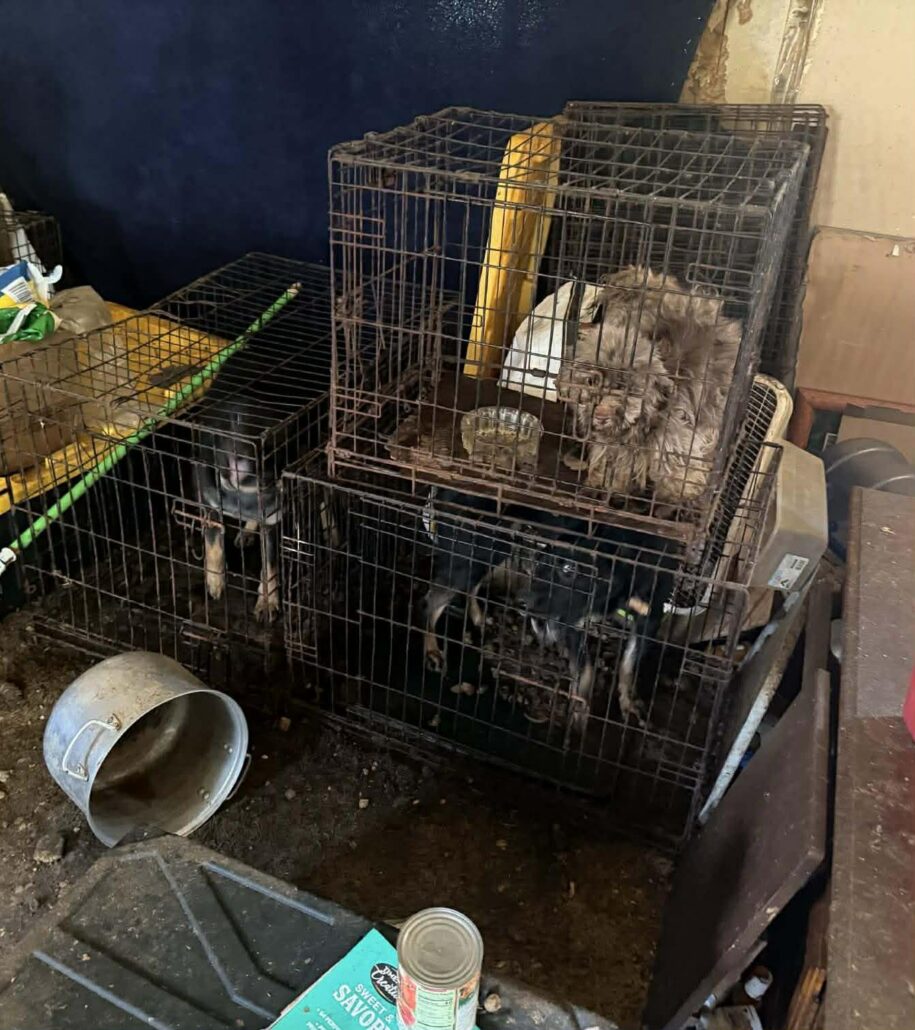 Dogs were abandoned without basic care in heartbreaking conditions. The rescue has stated they are “choosing” these animals and refuse to walk away from the property until every dog is safe.
