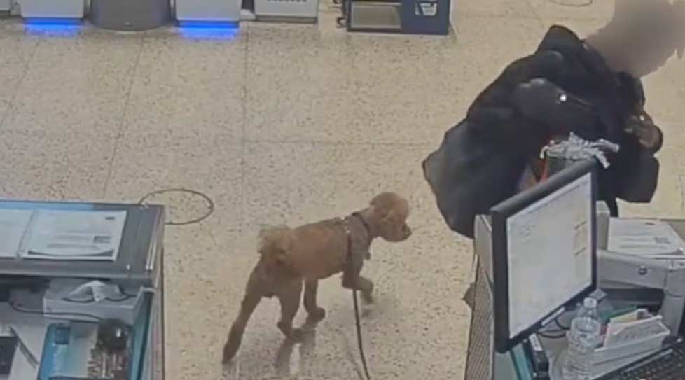 The woman had not completed the necessary paperwork in order to fly with the dog as a service animal, and the staff denied her a boarding pass. She tied the dog to a baggage sizer in Terminal 3, and within less than a minute walked away without the dog.