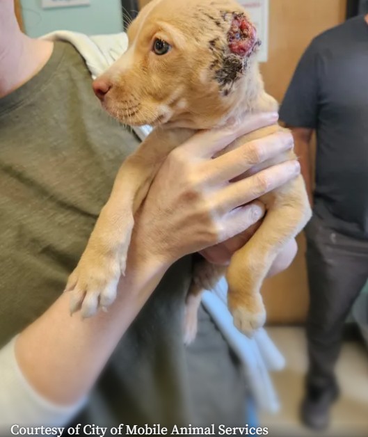 The puppy was taken to the City of Mobile Animal Services where Robert Bryant, the director of the organization, described the puppy’s heartbreaking injuries. The puppy’s ears had been cut off extremely close to her head, and according to veterinarians caring for her, the procedure had been performed without any medical training or sedation.