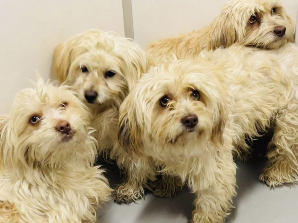 The dogs, believed to be poodle mixes known as “doodles” are not available at this time for adoption.