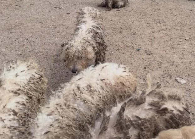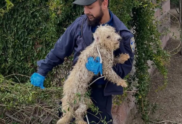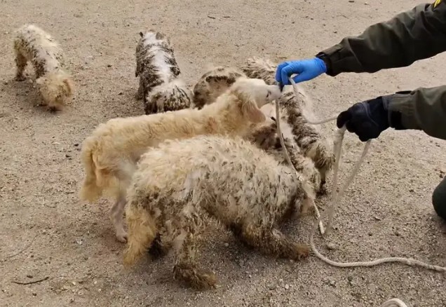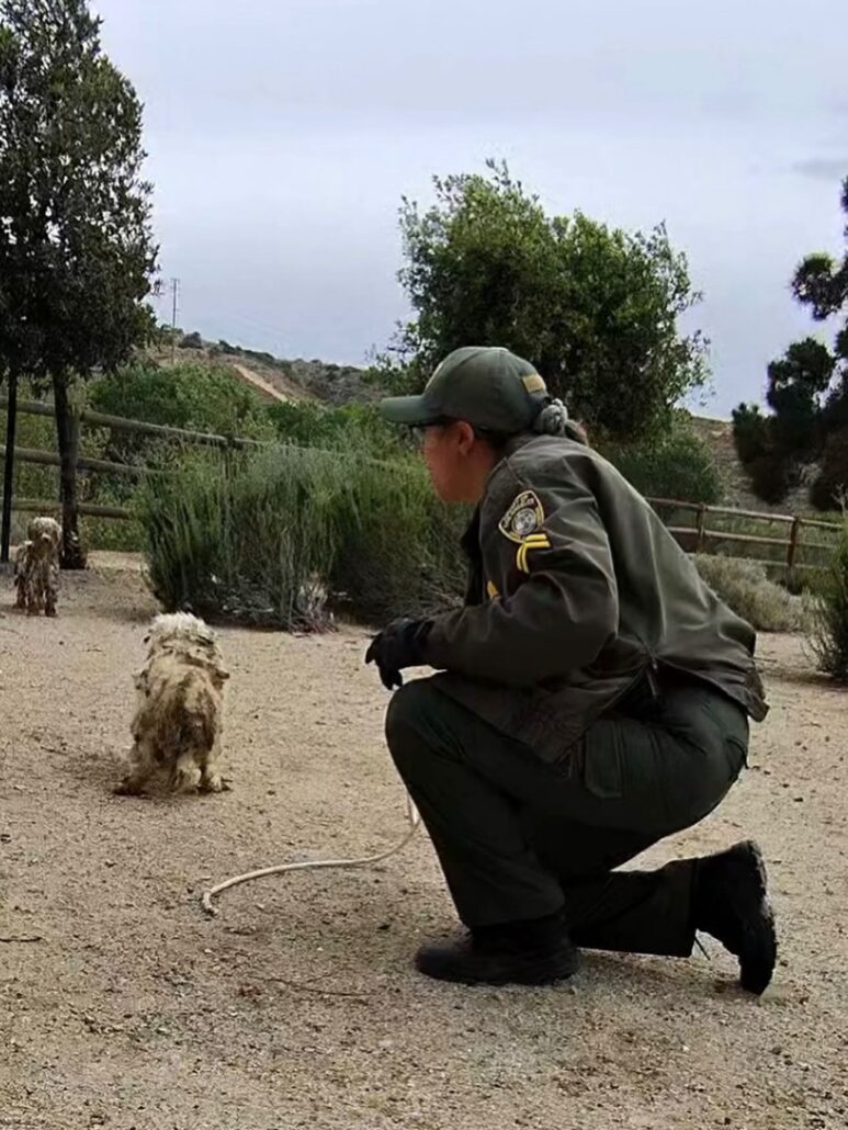 Responders were told a pack of small dogs had been huddled together in a corner of a park in Palmdale, north of Los Angeles. Cpl Ramos and a staff of animal control officers arrived on scene, and that’s when they spotted 16 loose small dogs. Almost every dog had matted fur filled with dirt, urine and feces. They smelled like it too.
