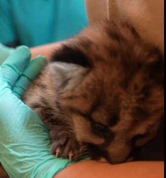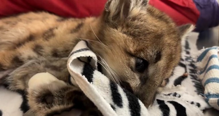 The latest cub, named Crimson had been rescued late last week by the National Park Service and California Department of Fish and Wildlife after he was spotted in a rural roadway. Because he is so young, the kit is being bottle fed every three hours by the staff at the zoo. He suffers from missing toes and malnutrition.