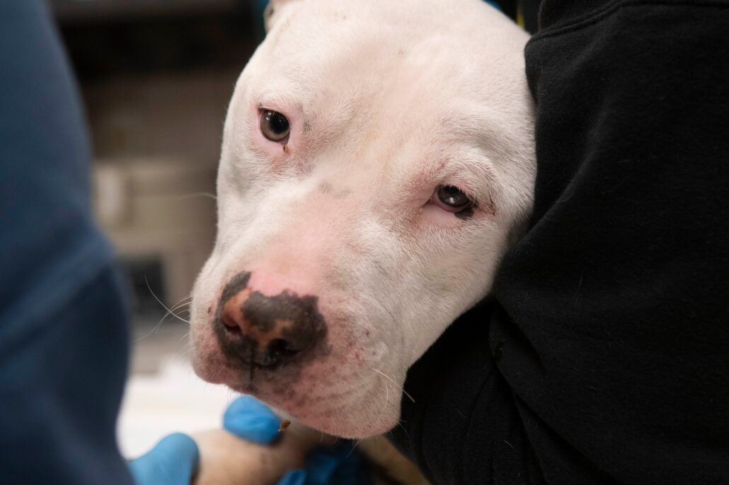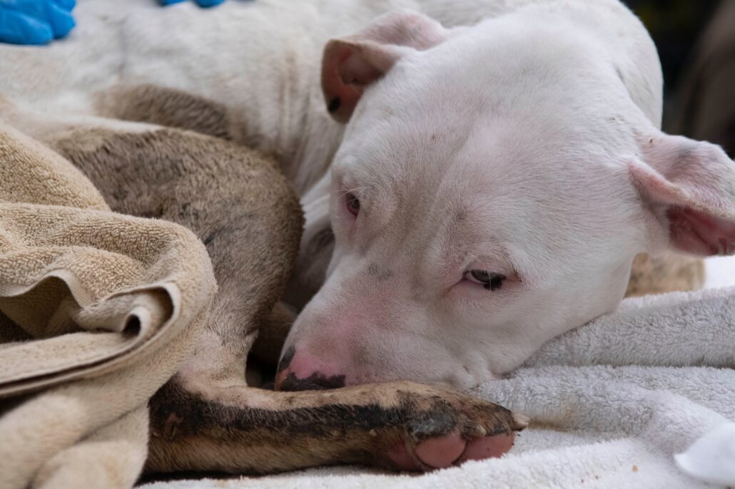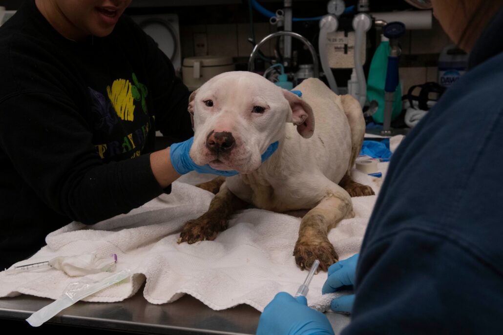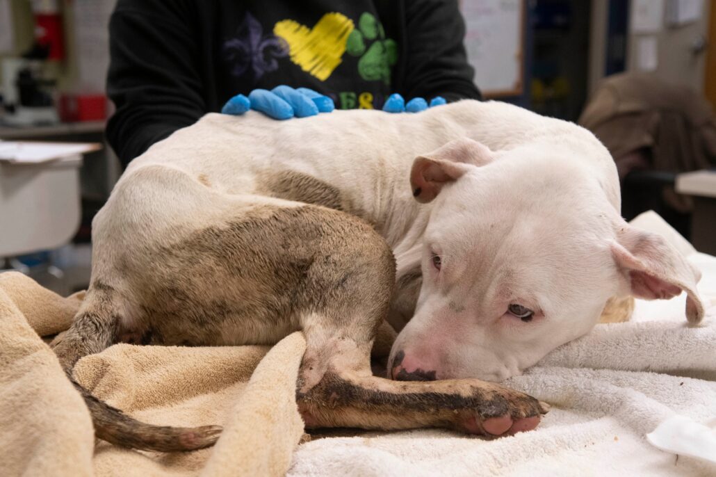 On Saturday morning, Stray Rescue of St. Louis rescued Campeón (Champion). The dog had been brought to the nonprofit animal rescue organization covered in his own waste. According to rescuers, he had been sitting in a crate for days.