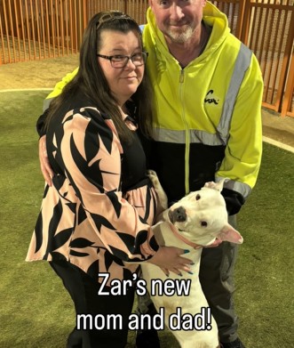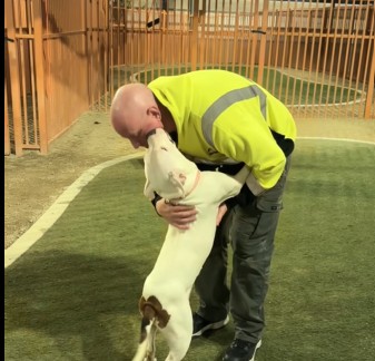 At the Animal Foundation in Las Vegas, from the day Zar entered the shelter, the friendly dog wanted to hug everyone she met. According to the shelter, anyone who came through the door, there was Zar – just as friendly as could ever be sweetly wrapping her paws around visitors.