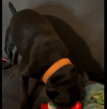 Her latest toy – her stuffed piggy had a squeaker, and that’s gone. Also the toy only has one leg, one ear and its tail is gone!