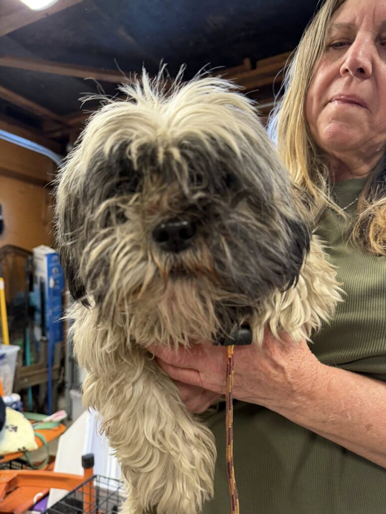 All four of them were matted, dirty and smelled as if they had never had a bath. One of the young dogs appeared to be heavily pregnant – her puppies might be born at anytime.