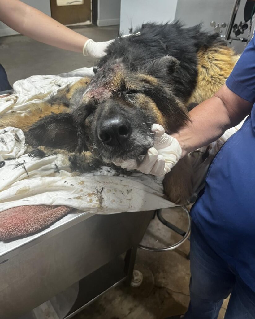 In Texas, Trina & Friends K-9 Rescue, reached out and volunteered to help A0060767375; a shepherd blend who arrived at the shelter on April 9, 2026 with maggots coming out of his head and ears from severe bite wounds. He was rushed to Family Pet Care in Texas.