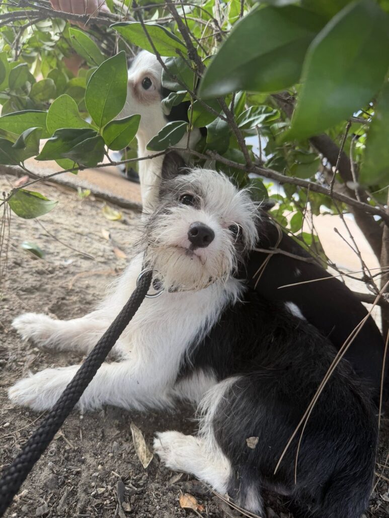 A kind woman saw what had just happened and reached out to Suzette Hall, founder of the nonprofit animal rescue Logan’s Legacy 29, asking for help. Upon her arrival, the two puppies who had fled, were deep in the bushes, terrified and shaking. It took time to reassure them she was there to help, as she slowly crawled under the bushes to capture them. The puppies were so young, so small and so incredibly frightened.